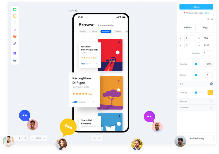 Explore and iterate as your team builds momentum - moving seamlessly from lo-fi to hi-fi as your project evolves.